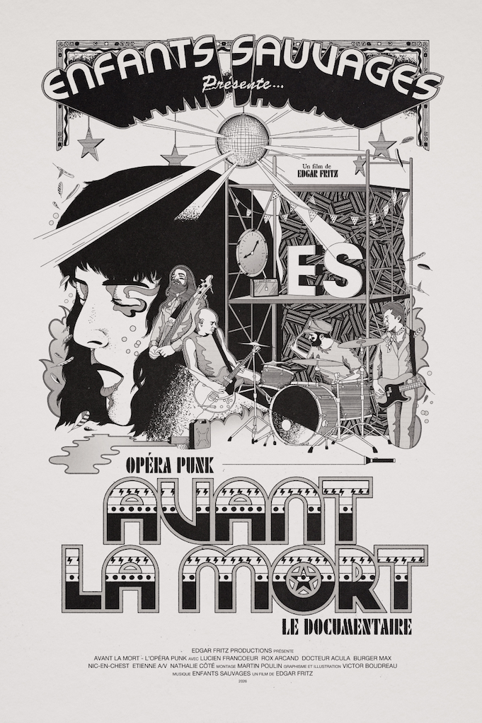 "Avant la mort" est un documentaire musical réalisé par Edgar Fritz qui nous plonge au cœur du processus de création du groupe Enfants Sauvages. Le court-métrage accompagne les membres du groupe dans l’élaboration et la production de leur opéra punk "Avant la mort", un spectacle ambitieux et atypique conçu pour porter à la scène leur troisième album. À travers des images immersives et un accès privilégié aux coulisses, le documentaire explore la transformation d’un album en œuvre scénique totale, où musique, mise en scène et performances se rencontrent pour donner naissance à une expérience à la fois intime et explosive. "Avant la mort" témoigne du spectacle unique présenté à Québec à l'été 2025.